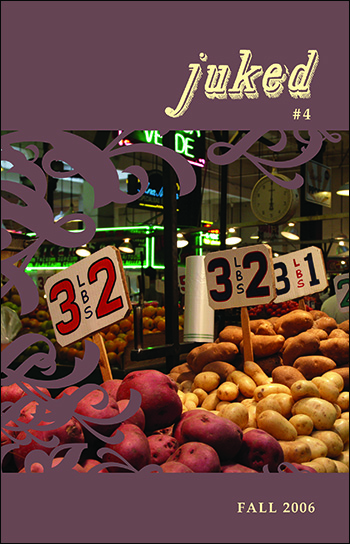 Juked #4Download the entire issue or individual works in .PDF format. Short Stories William Walsh Robert Shapard C.L. Bledsoe Claudia Smith Myung Joh Alan Rossi Marc Peacock Brush Dave Housley Stephen Graham Jones Shorter Shorts & Prose Poems Amber Nelson Kim Chinquee Spencer Dew Bob Arter Matt Bell Dominic Rehayem Mazie Louise Montgomery Estrella del Valle P.J. Underwood Patrick Whitfill Rosie Sharp Matthew Simmons Verse Poems Sean Kilpatrick Mike Young L. Ward Abel Elizabeth Ellen Tao Lin |